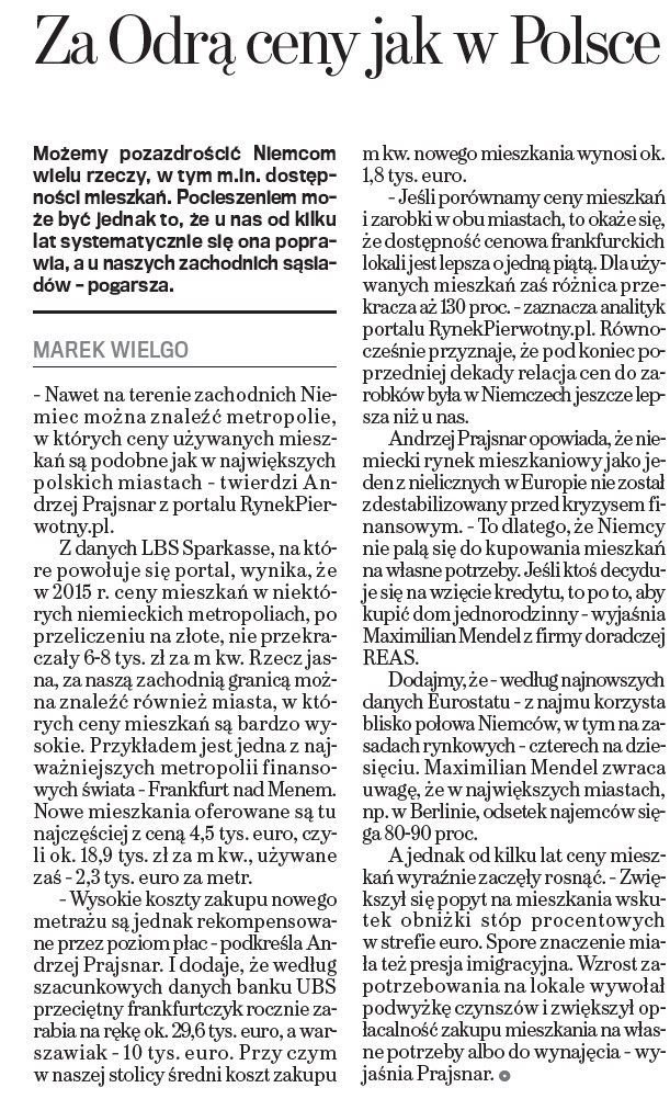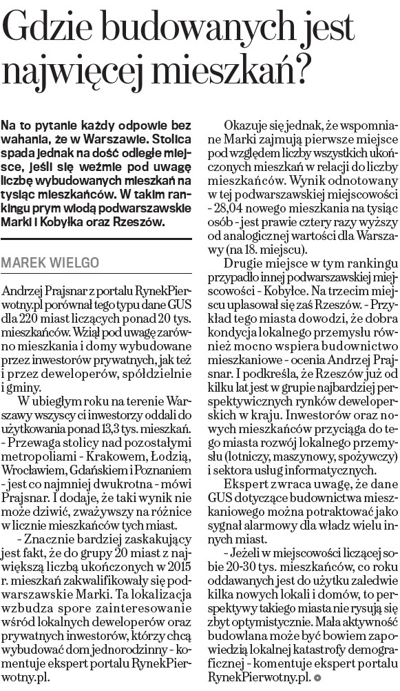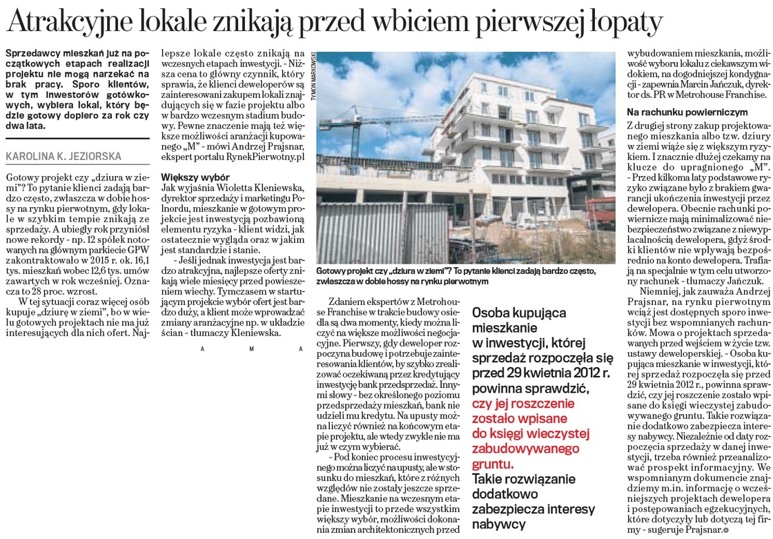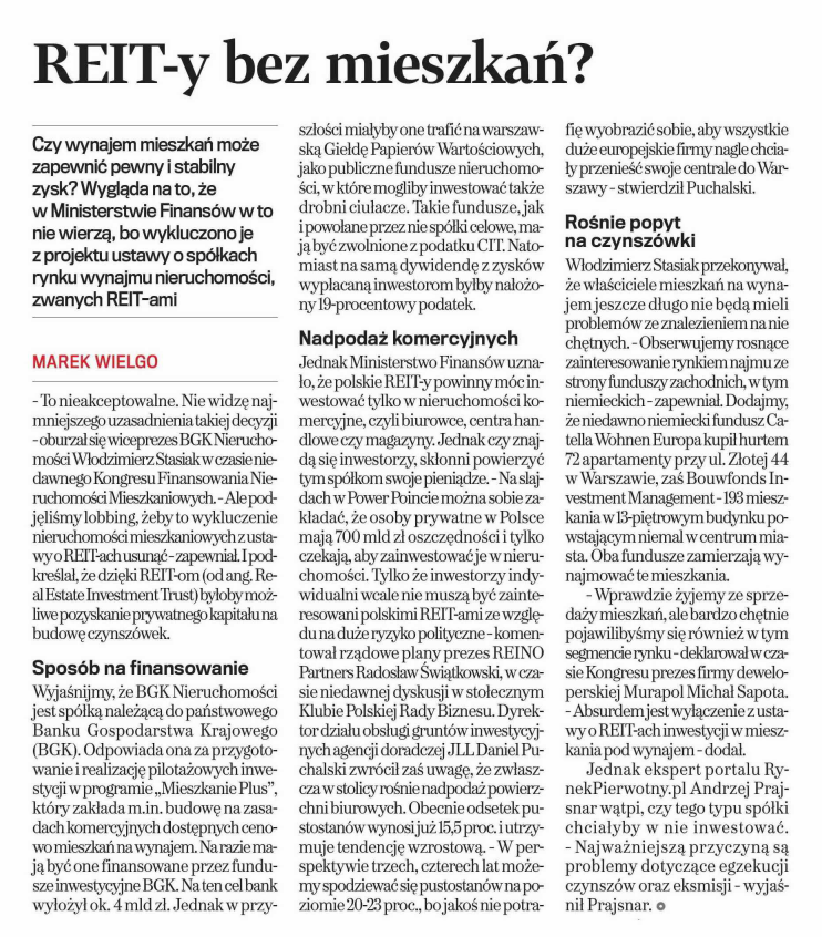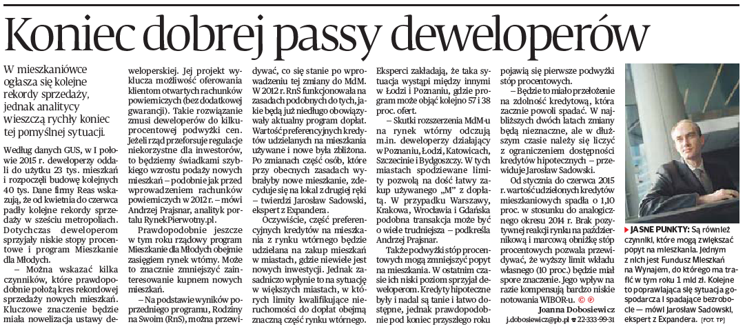 - Raport Dziennika Przedsiębiorcy “Inwestycja w Nieruchomości” (lipiec 2015 r.)