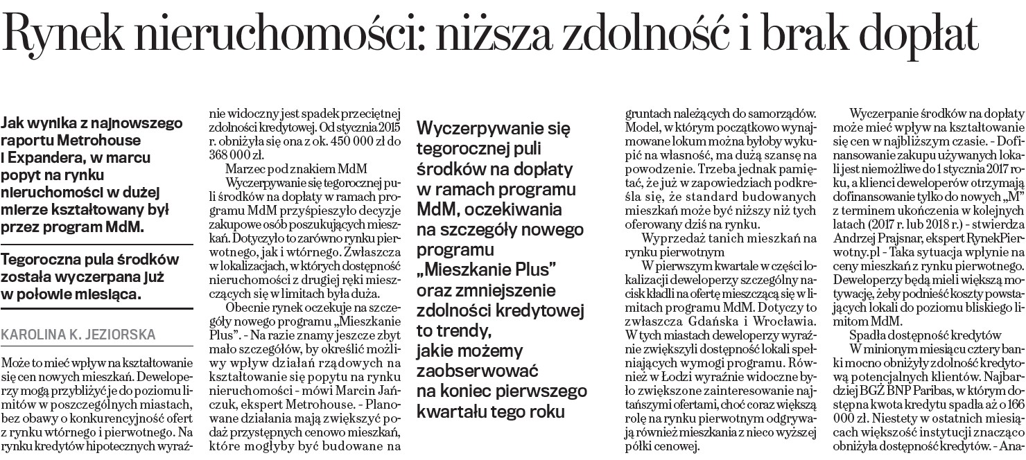 - Raport Polski Rynek Nieruchomości, kwiecień 2016 r.